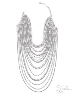 Dainty, twisted silver chains are interspersed alongside rows of explosive sparkle, layering into a dynamic lineup of grit and glitz. The meticulous placement and uniform sizing of the glittery, white rhinestones in squared silver fittings are contrasted by the twisted texture of the dainty chains, as the strands drape and extend a little farther than the last, building into a medley of elegantly elite layers. Features an adjustable clasp closure.
