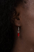 Mismatched silver chains layer below the collar. Shell-like red beads and shiny silver beads trickle from the lowermost chain, creating an iridescent fringe. Features an adjustable clasp closure.