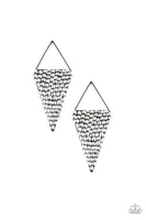 Paparazzi Accessories Have a Bite - Silver Earrings a hammered triangular frame attaches to a glistening silver triangular silhouette, creating an edgy lure. Earring attaches to a standard post fitting.