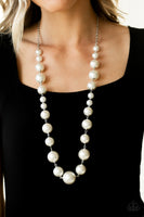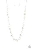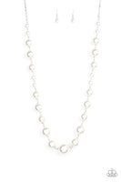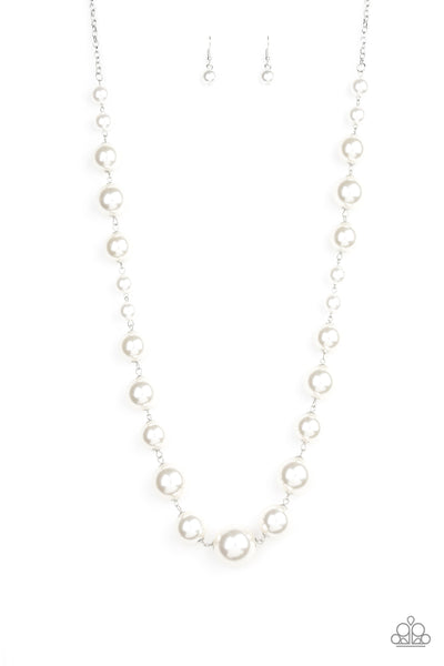 Infused with dainty white pearls, a bubbly collection of oversized pearls link across the chest for a timeless finish. Features an adjustable clasp closure.